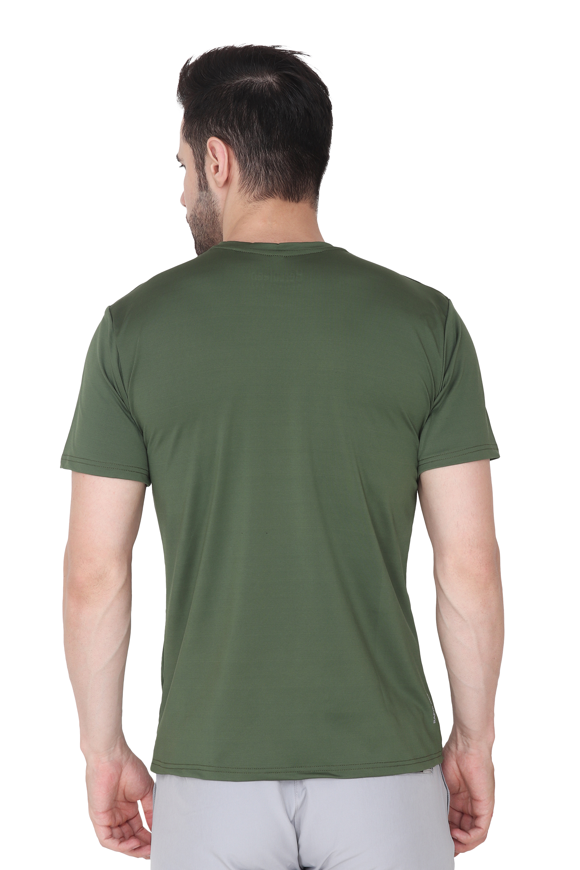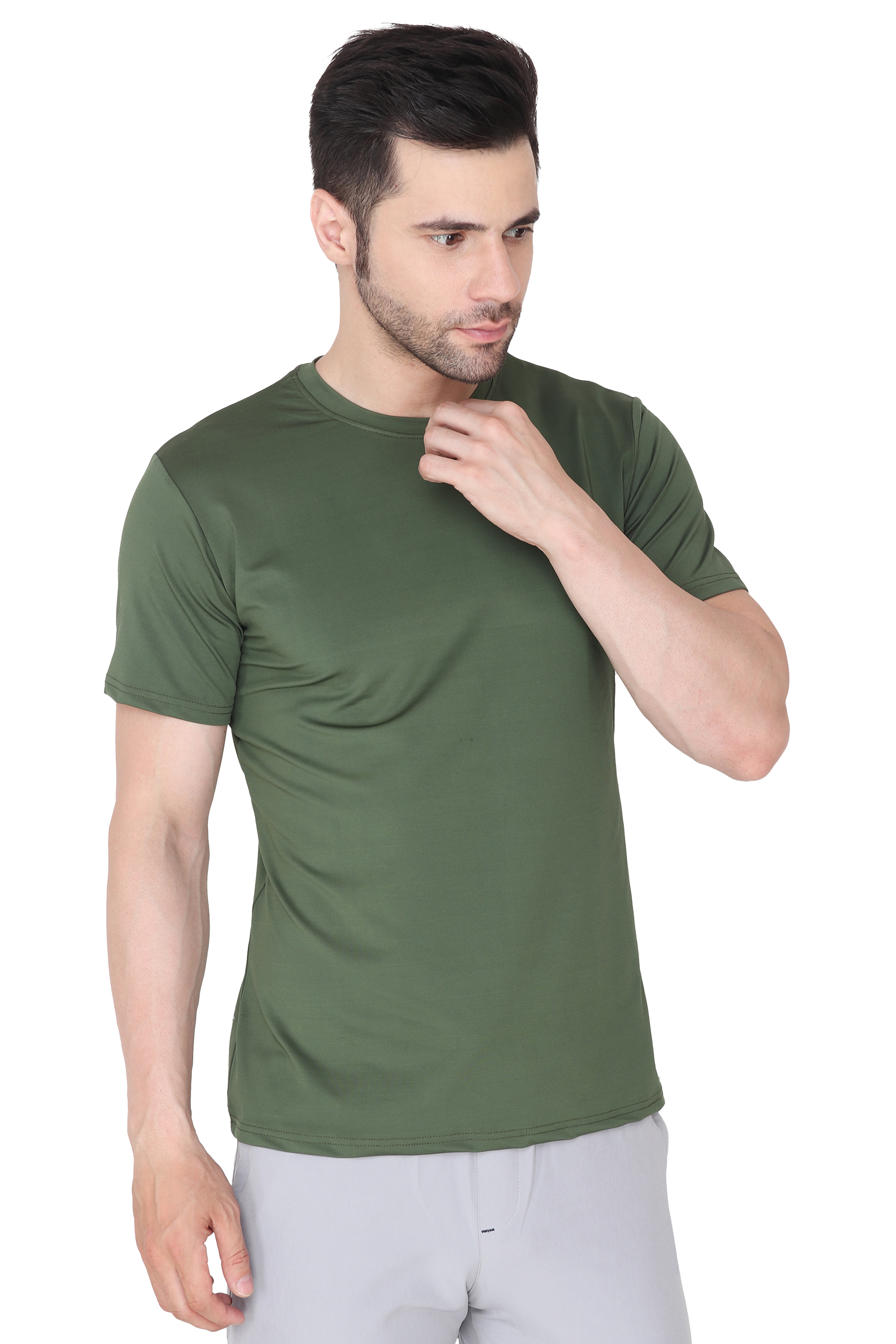 Introducing the ultimate wardrobe essential for the modern man - the 'Men Solid Round Neck Polyester Olive T-Shirt'. Crafted to perfection, this versatile Olive tee is a must-have addition to your clothing collection. Whether you're heading out for a casual day with friends, hitting the gym, or simply looking for comfortable everyday wear, this t-shirt has got you covered.