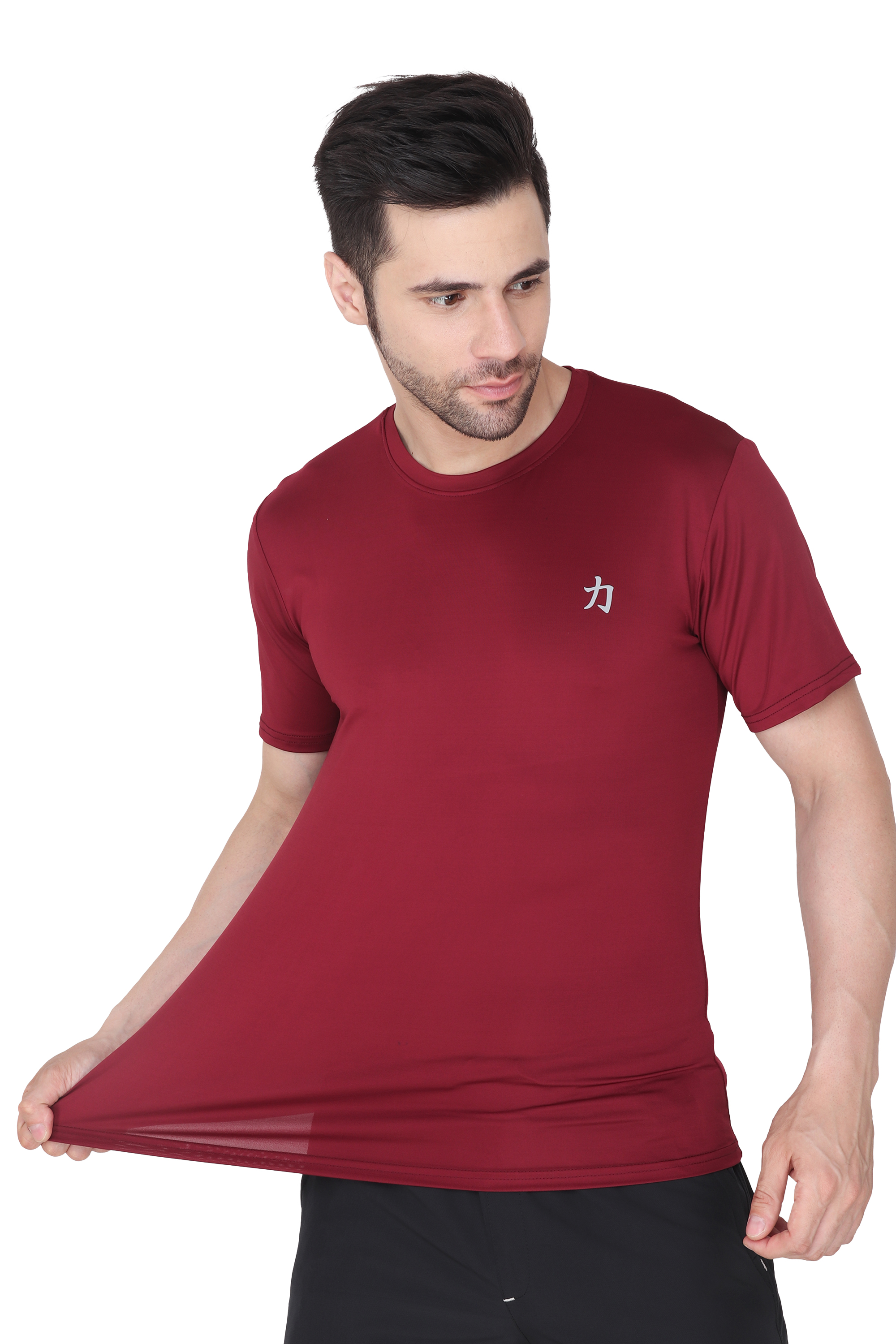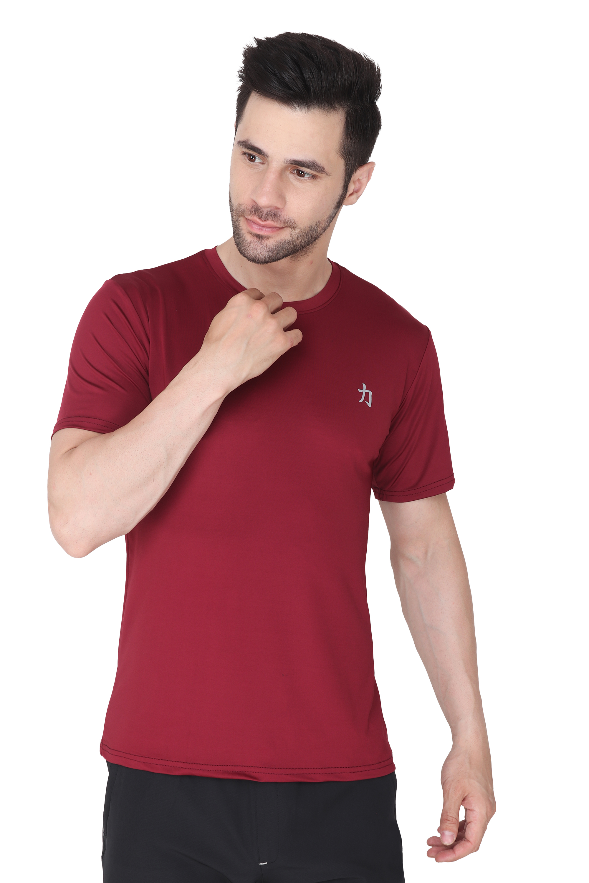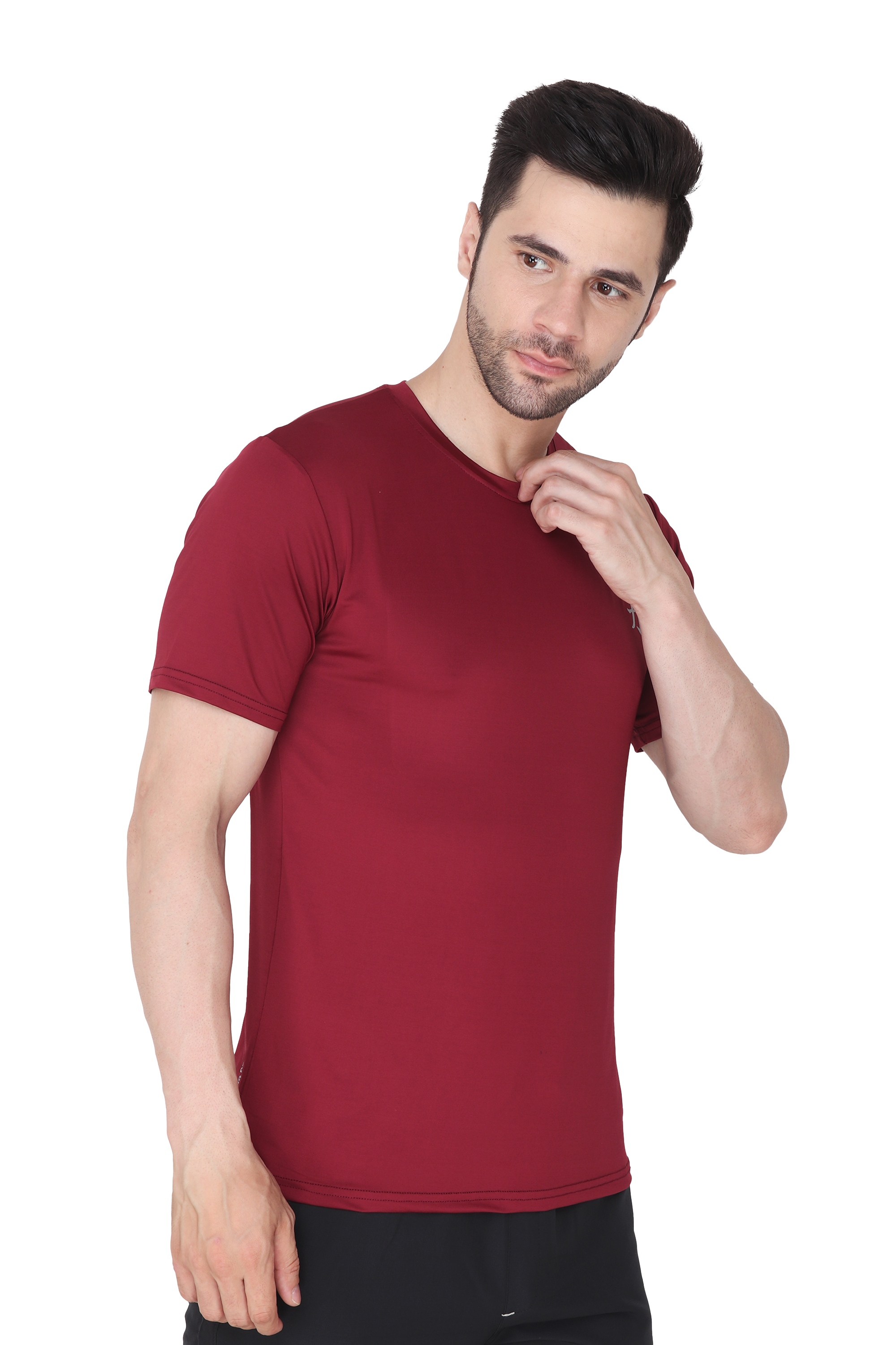 Introducing the ultimate wardrobe essential for the modern man - the 'Men Solid Round Neck Polyester Maroon T-Shirt'. Crafted to perfection, this versatile Maroon tee is a must-have addition to your clothing collection. Whether you're heading out for a casual day with friends, hitting the gym, or simply looking for comfortable everyday wear, this t-shirt has got you covered.