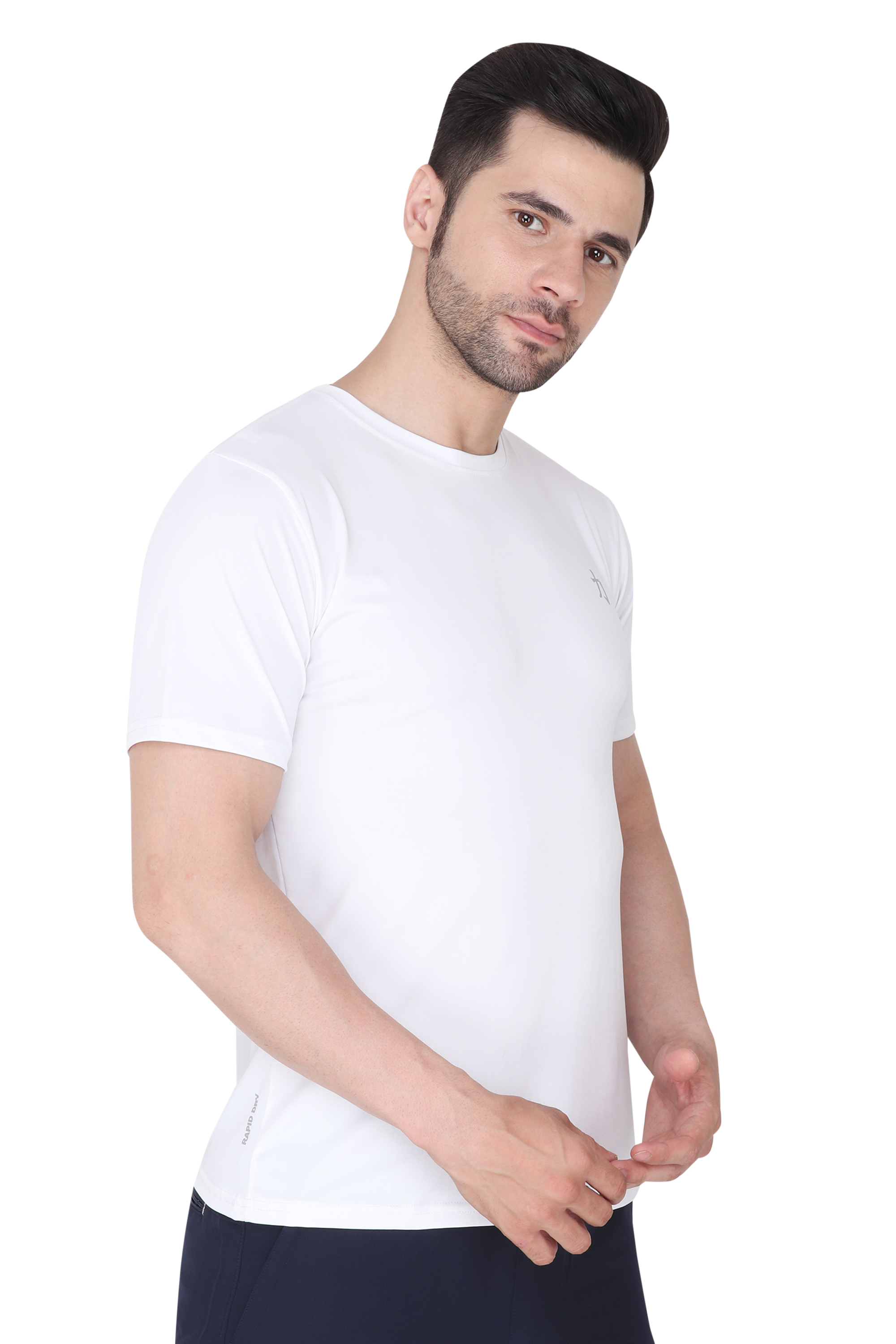 Introducing the ultimate wardrobe essential for the modern man - the 'Men Solid Round Neck Polyester White T-Shirt'. Crafted to perfection, this versatile White tee is a must-have addition to your clothing collection. Whether you're heading out for a casual day with friends, hitting the gym, or simply looking for comfortable everyday wear, this t-shirt has got you covered.