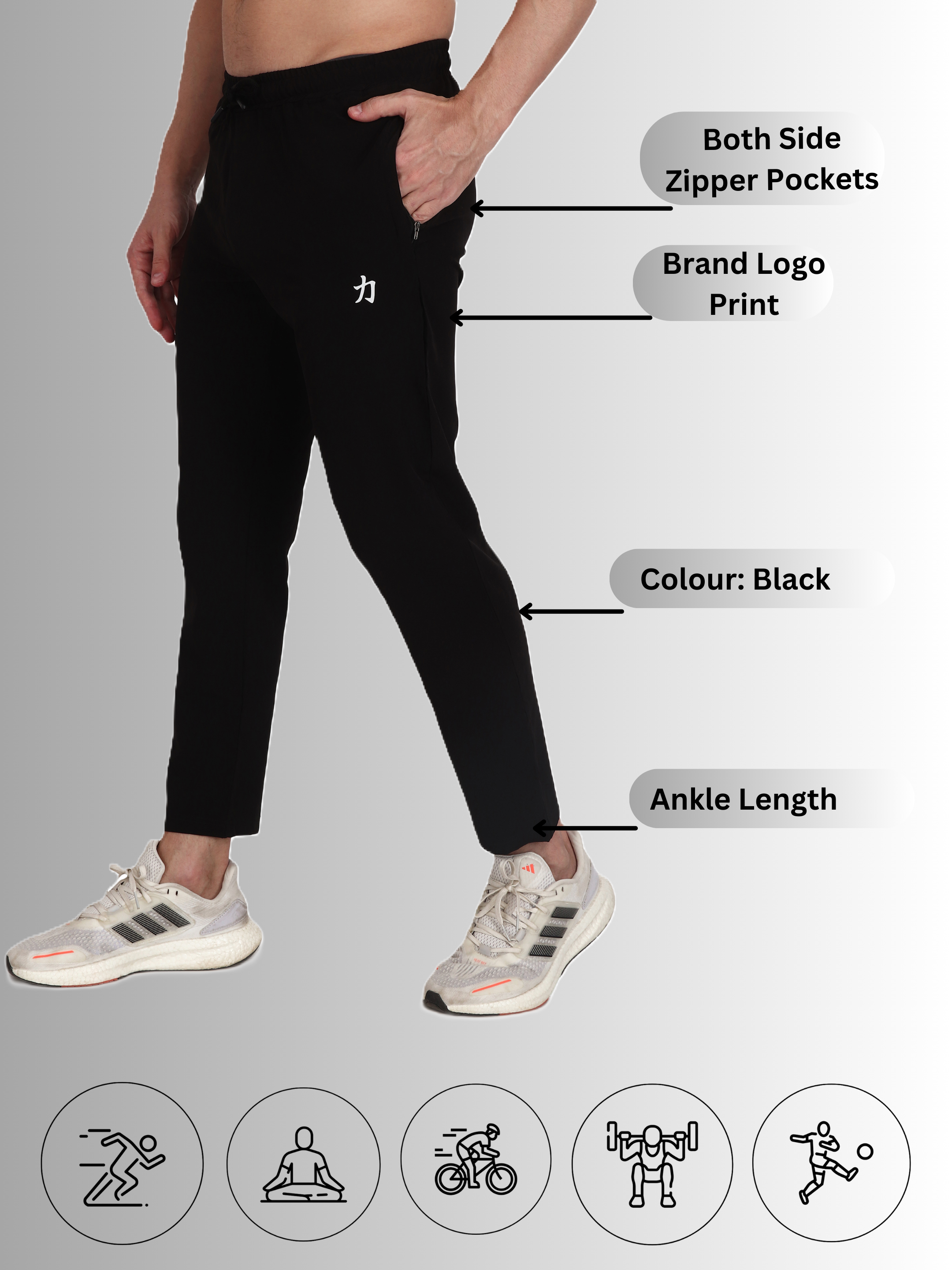 Men Black Gym Track Pants – Lightweight, Stretchable, and Moisture-Wicking Power through your workouts with these sleek black gym track pants, designed for performance and style. Made from dryfit, lycra fabric, these track pants provide a snug fit without compromising flexibility. The moisture-wicking technology keeps you dry during intense workouts, while the elastic waistband ensures a secure and comfortable fit. Whether you’re lifting weights, running, or doing yoga, these track pants are your ideal companion.