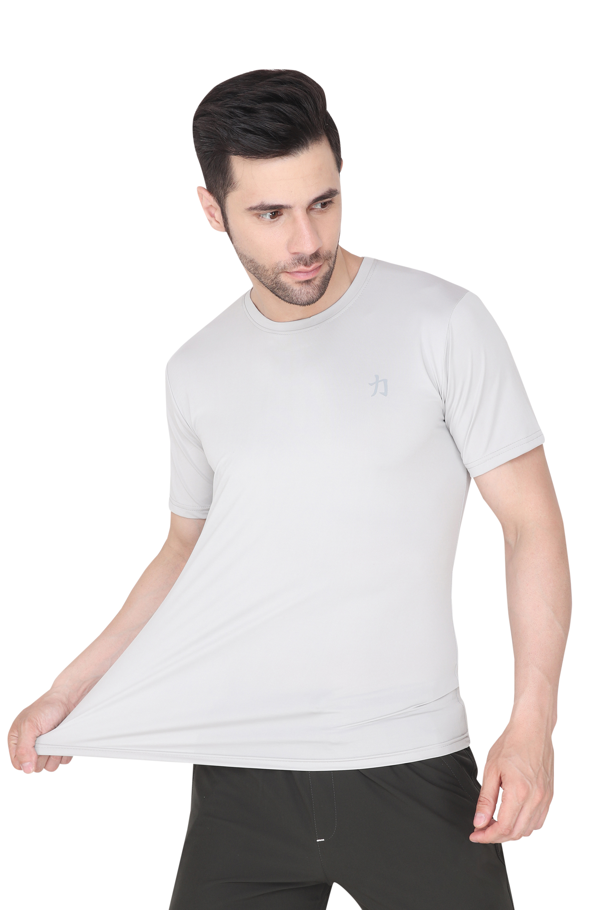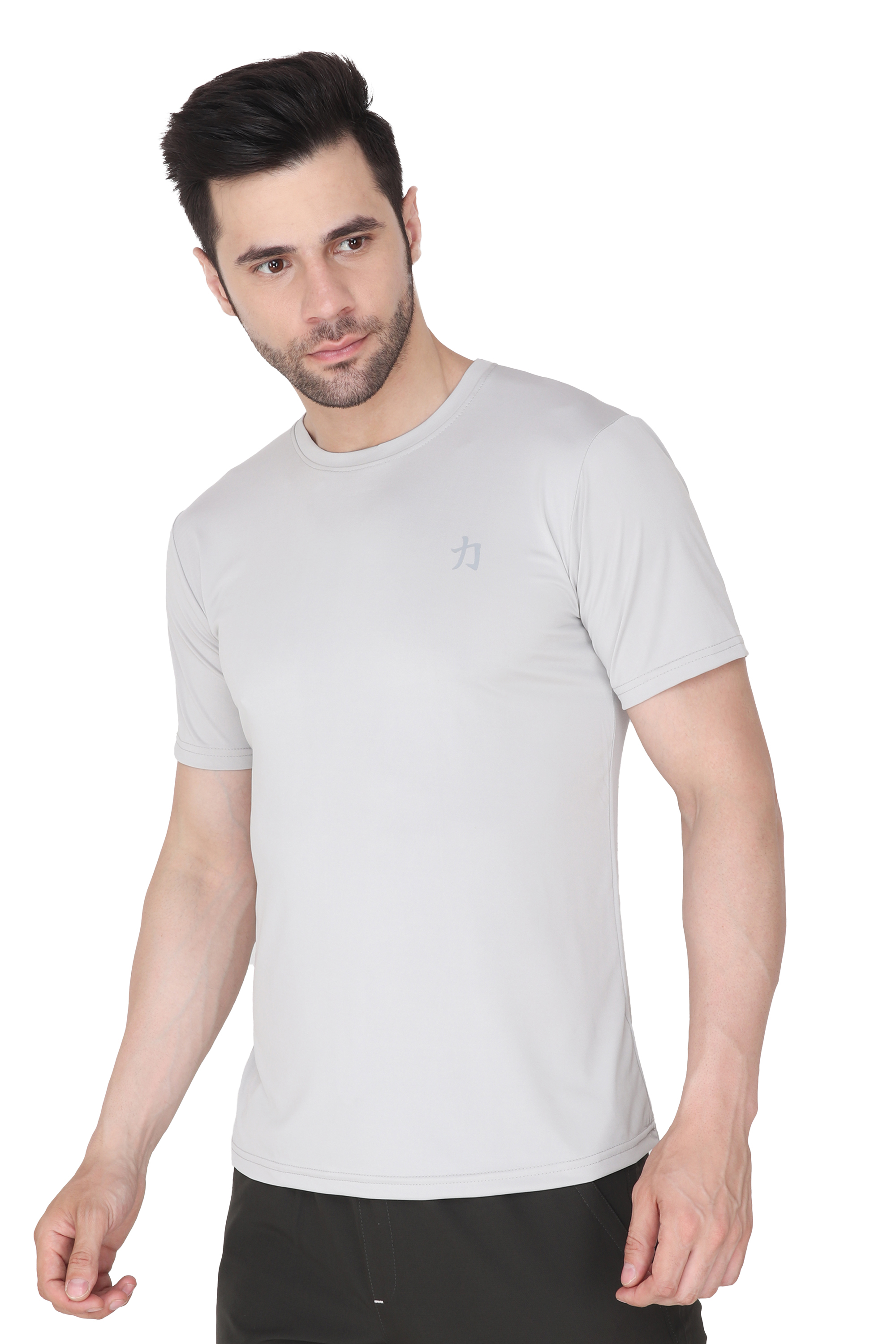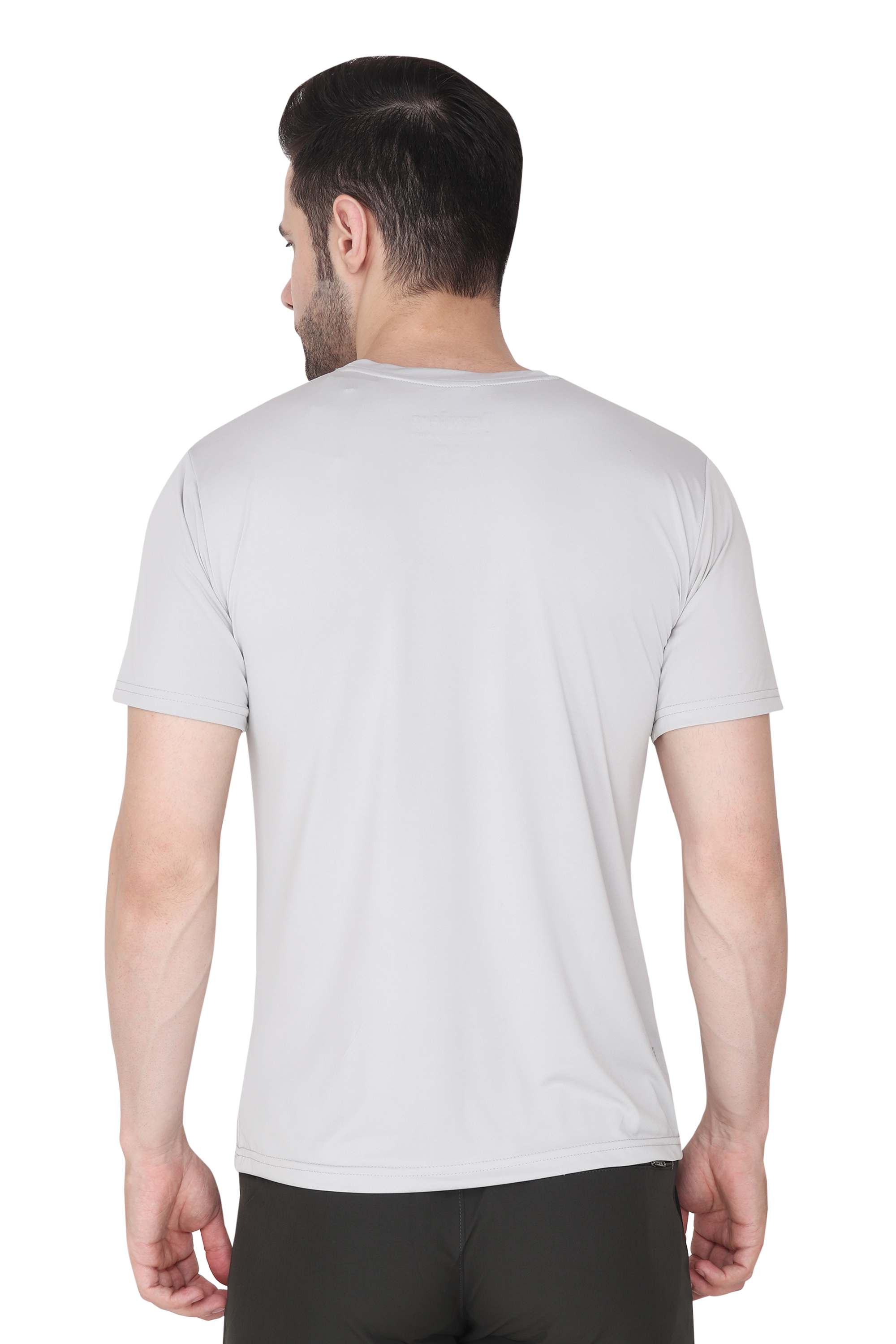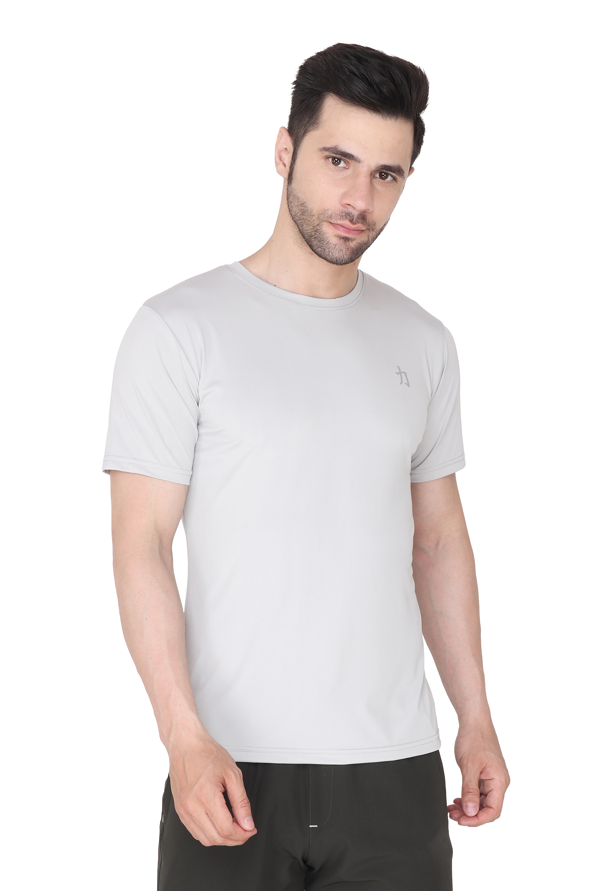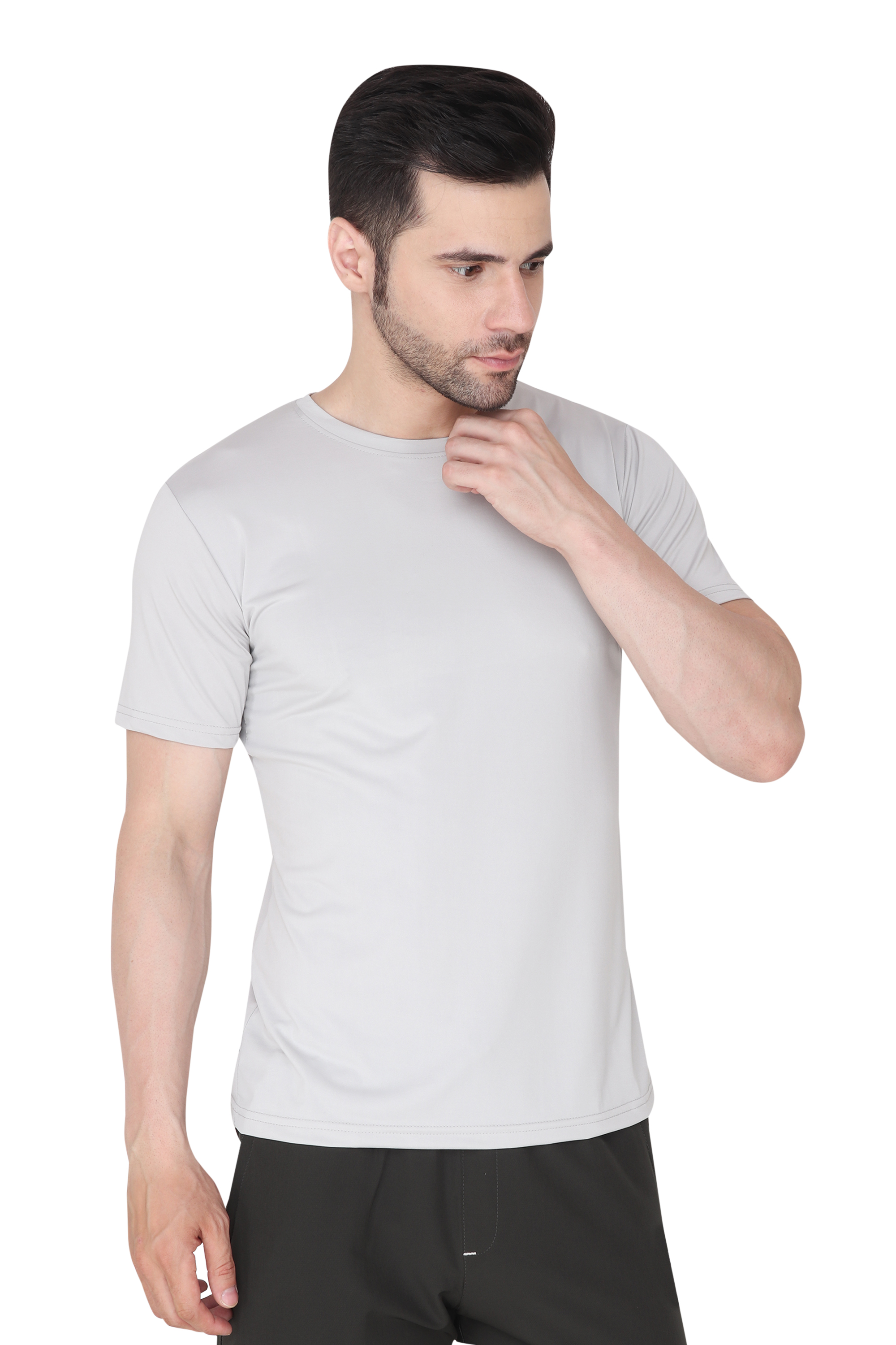 Introducing the ultimate wardrobe essential for the modern man - the 'Men Solid Round Neck Polyester Light Grey T-Shirt'. Crafted to perfection, this versatile Light Grey tee is a must-have addition to your clothing collection. Whether you're heading out for a casual day with friends, hitting the gym, or simply looking for comfortable everyday wear, this t-shirt has got you covered.