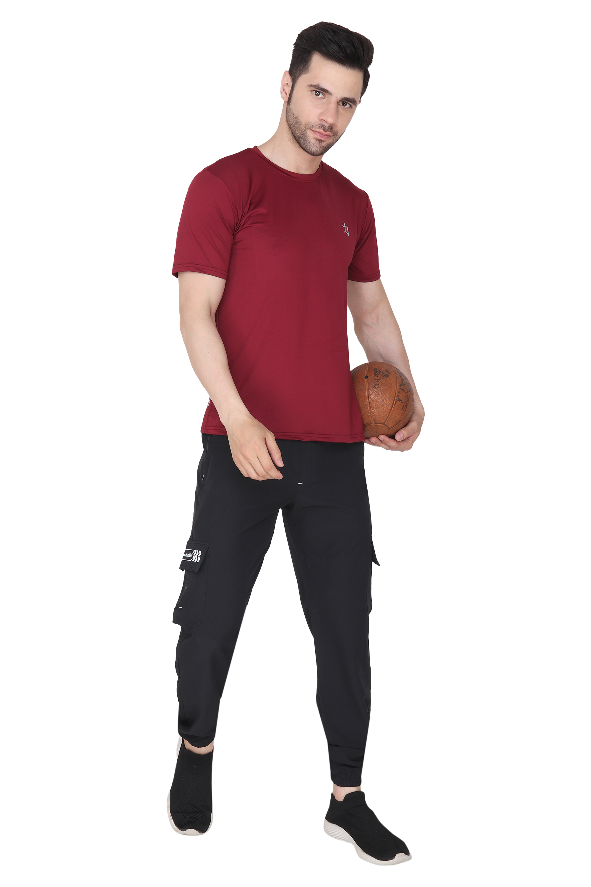 Introducing the ultimate wardrobe essential for the modern man - the 'Men Solid Round Neck Polyester Maroon T-Shirt'. Crafted to perfection, this versatile Maroon tee is a must-have addition to your clothing collection. Whether you're heading out for a casual day with friends, hitting the gym, or simply looking for comfortable everyday wear, this t-shirt has got you covered.