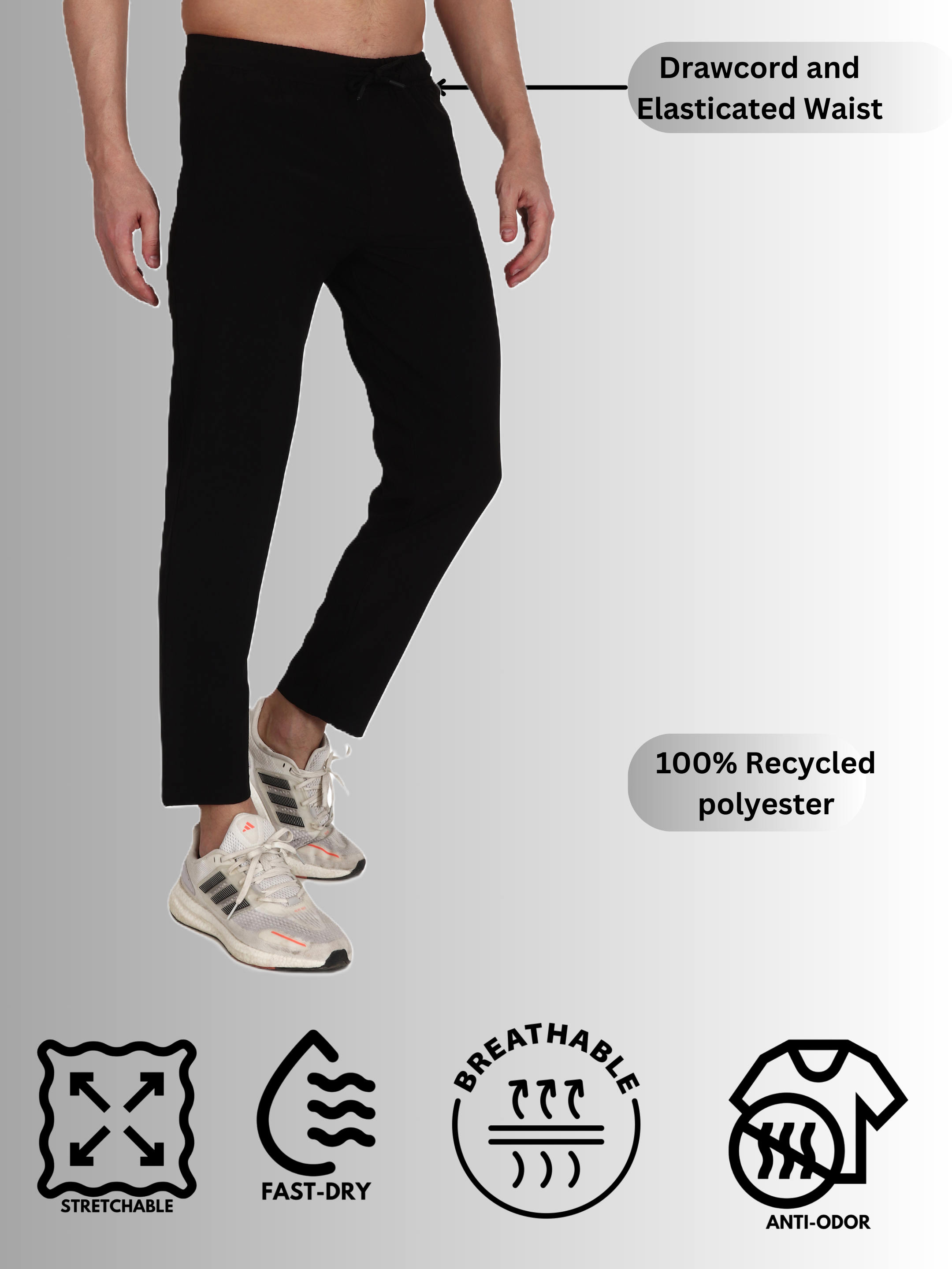 Men Black Gym Track Pants – Lightweight, Stretchable, and Moisture-Wicking Power through your workouts with these sleek black gym track pants, designed for performance and style. Made from dryfit, lycra fabric, these track pants provide a snug fit without compromising flexibility. The moisture-wicking technology keeps you dry during intense workouts, while the elastic waistband ensures a secure and comfortable fit. Whether you’re lifting weights, running, or doing yoga, these track pants are your ideal companion.