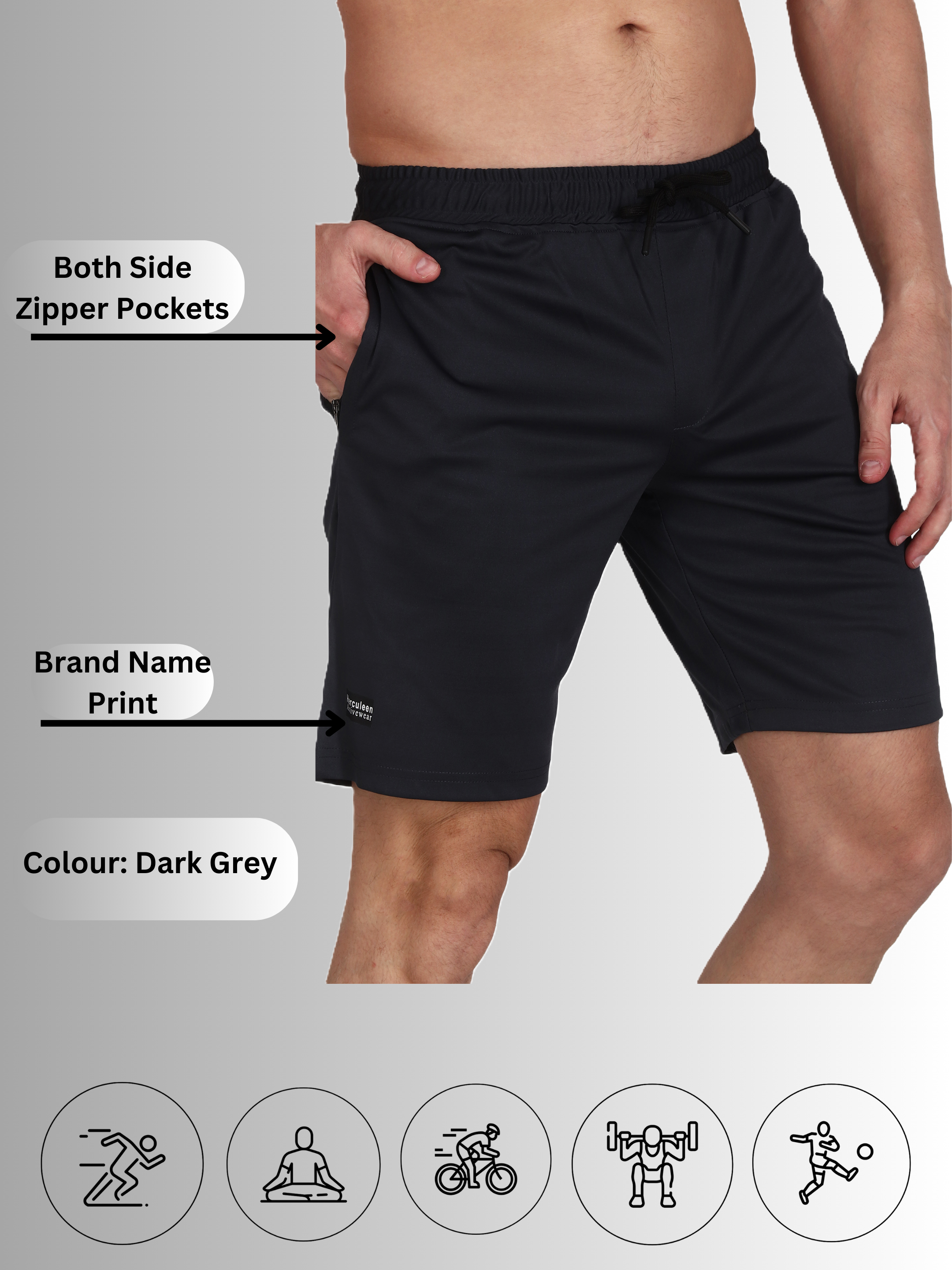 Men's Grey Gym Shorts - Breathable, Dryfit, and Comfortable SportsWear Push your limits with these Men Grey Gym Shorts, designed to support your active lifestyle. Crafted from lightweight, moisture-wicking fabric, these shorts ensure you stay cool and dry during intense workouts or casual runs. The Lycra material gives you unrestricted movement, making them perfect for gym sessions, sports, yoga or Outdoor. These shorts feature a soft elastic waistband for a secure fit, while the drawstring adjustment allows you to customize your comfort. Two deep side Zip pockets provide convenient storage for essentials like phones, wallets, or earbuds. The minimalist grey color blends effortlessly with any gym look or casual wear. Whether it’s weight training, running, or lounging, these grey gym shorts will keep you feeling light and confident throughout the day. Elevate your active wardrobe with these durable, stylish, and performance-driven shorts. Gear up and move with confidence in these high-performance grey gym shorts – made for those who never quit!