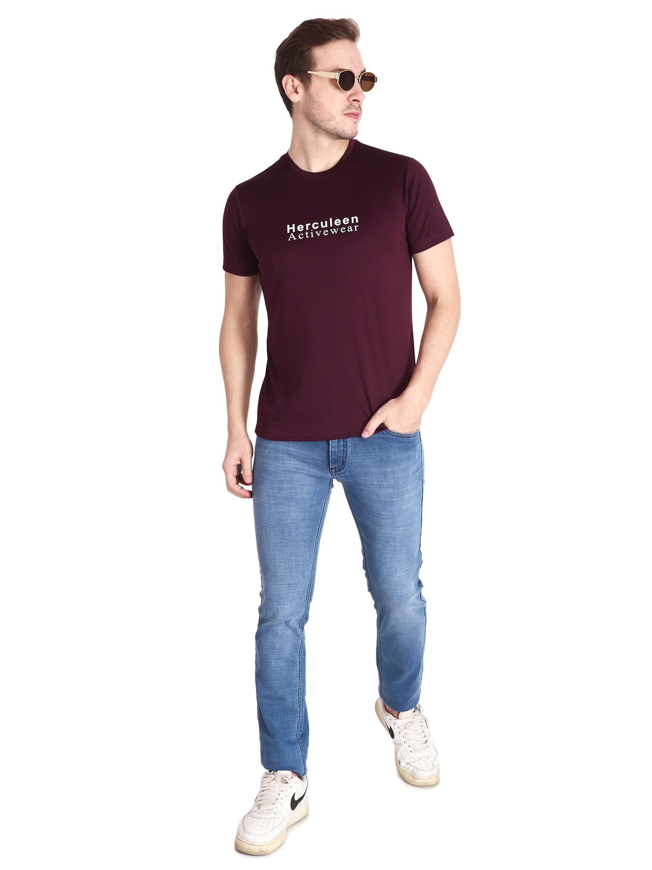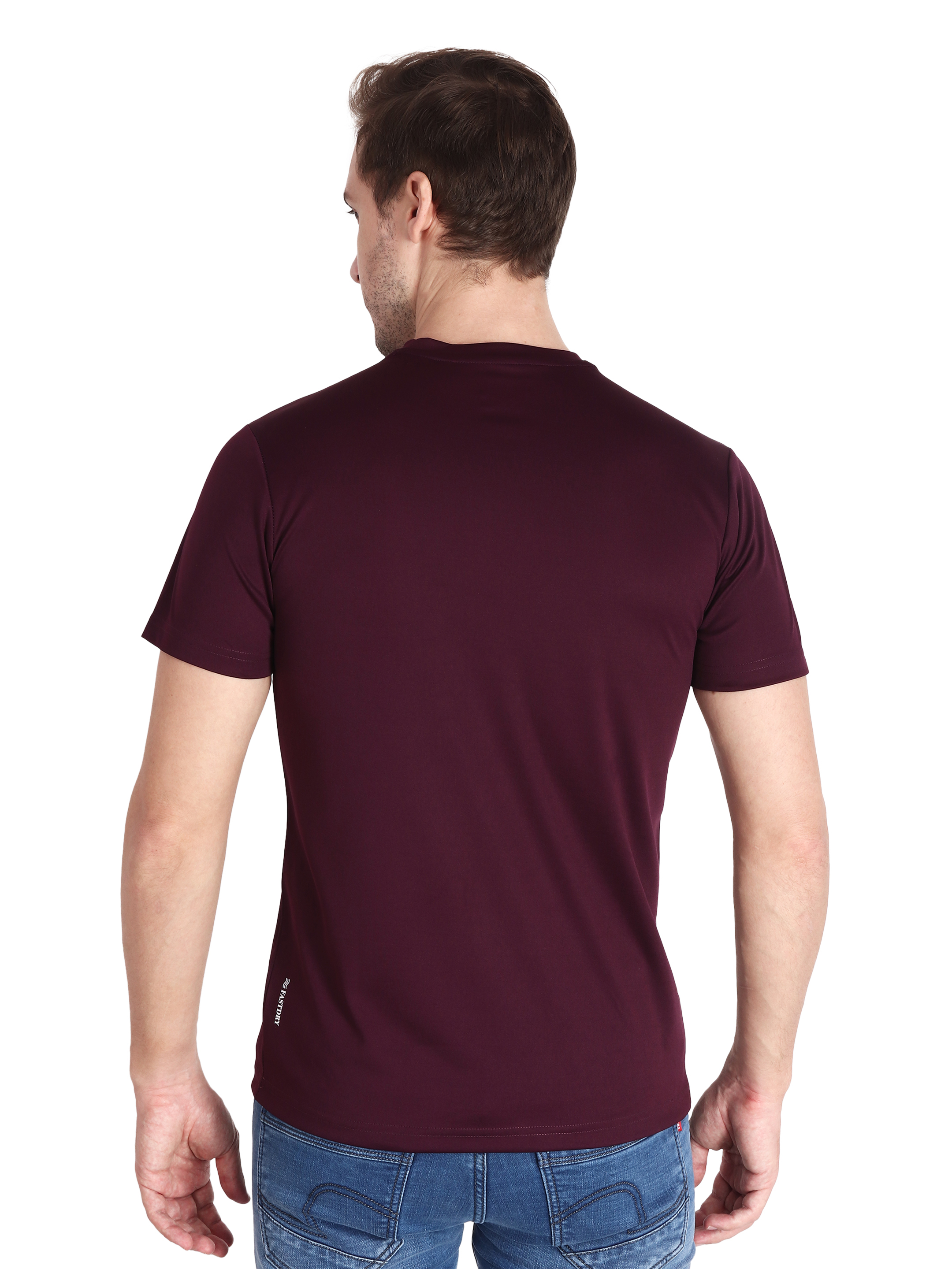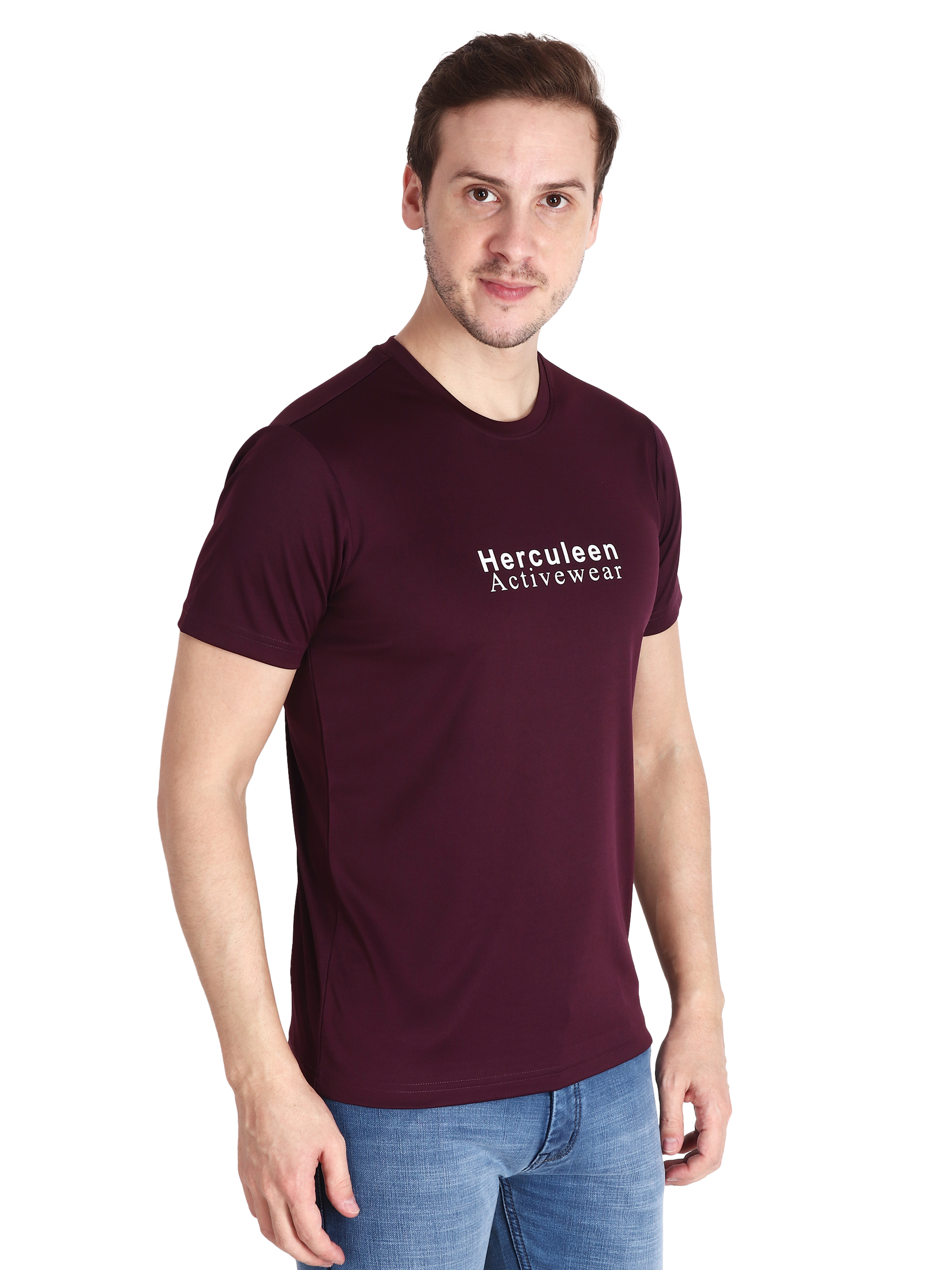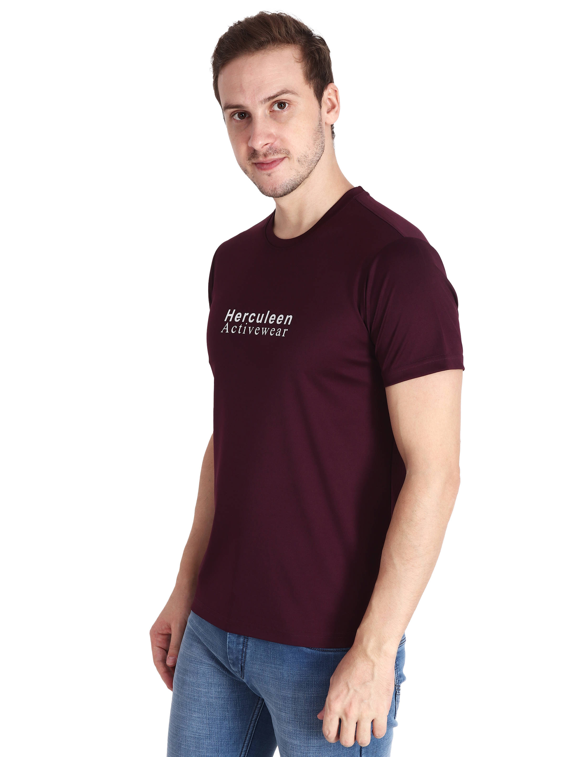 During your physical activity, look good and feel comfortable in this men's purple/wine sports t-shirt. This t-shirt is made of lightweight, moisture-wicking, Drifit fabric, which keeps you cool and dry even when engaging in intense exercise. The vivid purple color gives your sportswear an upbeat, new look. Also you can wear it with denim or trouser for outing. This round neck brand print on chest looks great with minimalistic look.